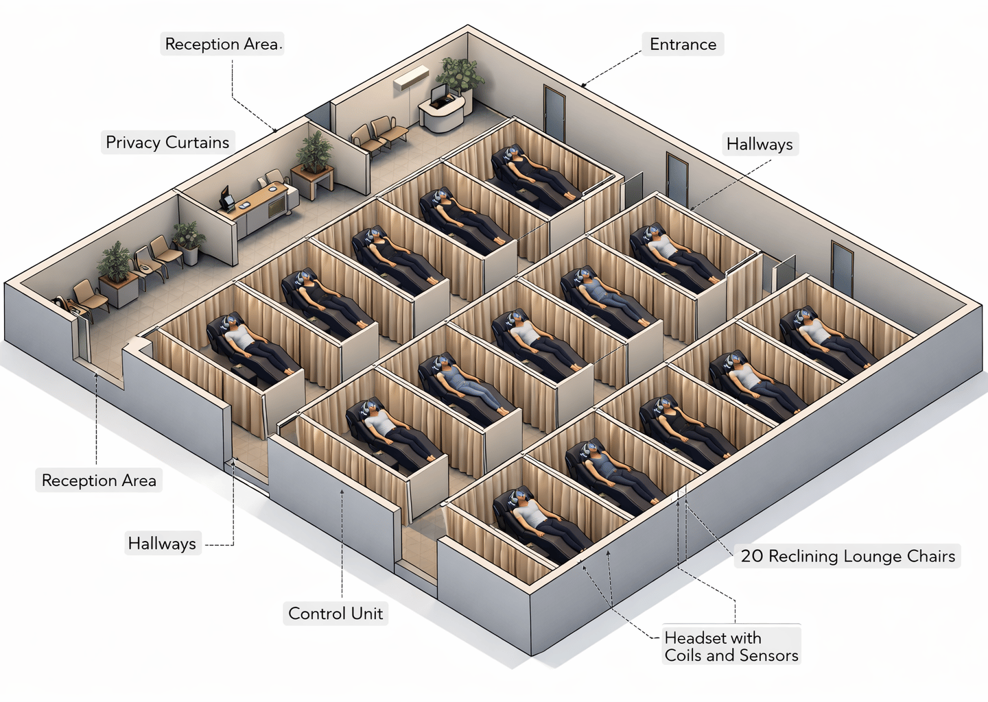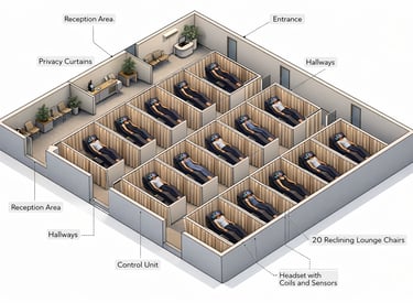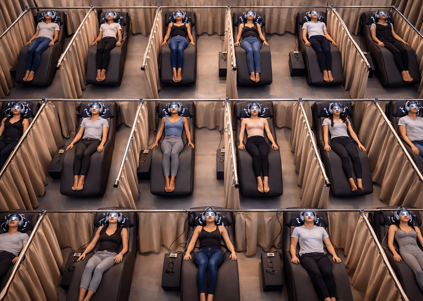 Pense nisso como o equivalente mental de um estúdio de fitness ou sala de recuperação: os clientes visitam regularmente para melhorar o foco, reduzir o estresse e redefinir seu estado cognitivo.